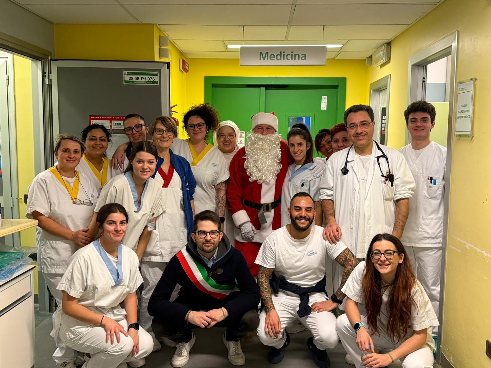 𝗕𝗮𝗯𝗯𝗼 𝗡𝗮𝘁𝗮𝗹𝗲 (intrpretato dal Consigliere Comunale Giuliano Tassi), accompagnato dall'Assessore Marco 𝗗𝗼𝗻𝗻𝗮𝗿𝘂𝗺𝗺𝗮 e da Suor Teresa Locatelli, ha portato un abbraccio e un caloroso augurio di "𝐵𝑢𝑜𝑛𝑒 𝐹𝑒𝑠𝑡𝑒" a tutti gli ospiti dell'Ospedale Santa Maria Bianca e allo straordinario personale.