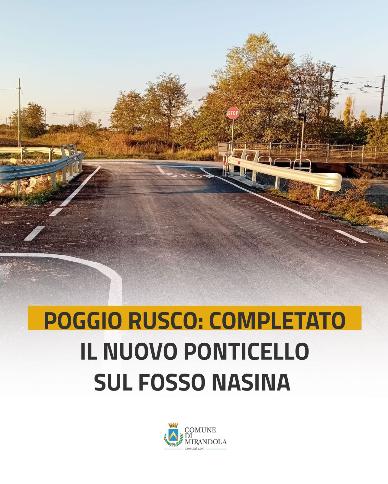 Nei giorni scorsi è stato completato l’intervento di rifacimento del ponticello sul Fosso Nasina, al confine con il territorio mirandolese. I lavori si sono conclusi con la posa della segnaletica stradale.