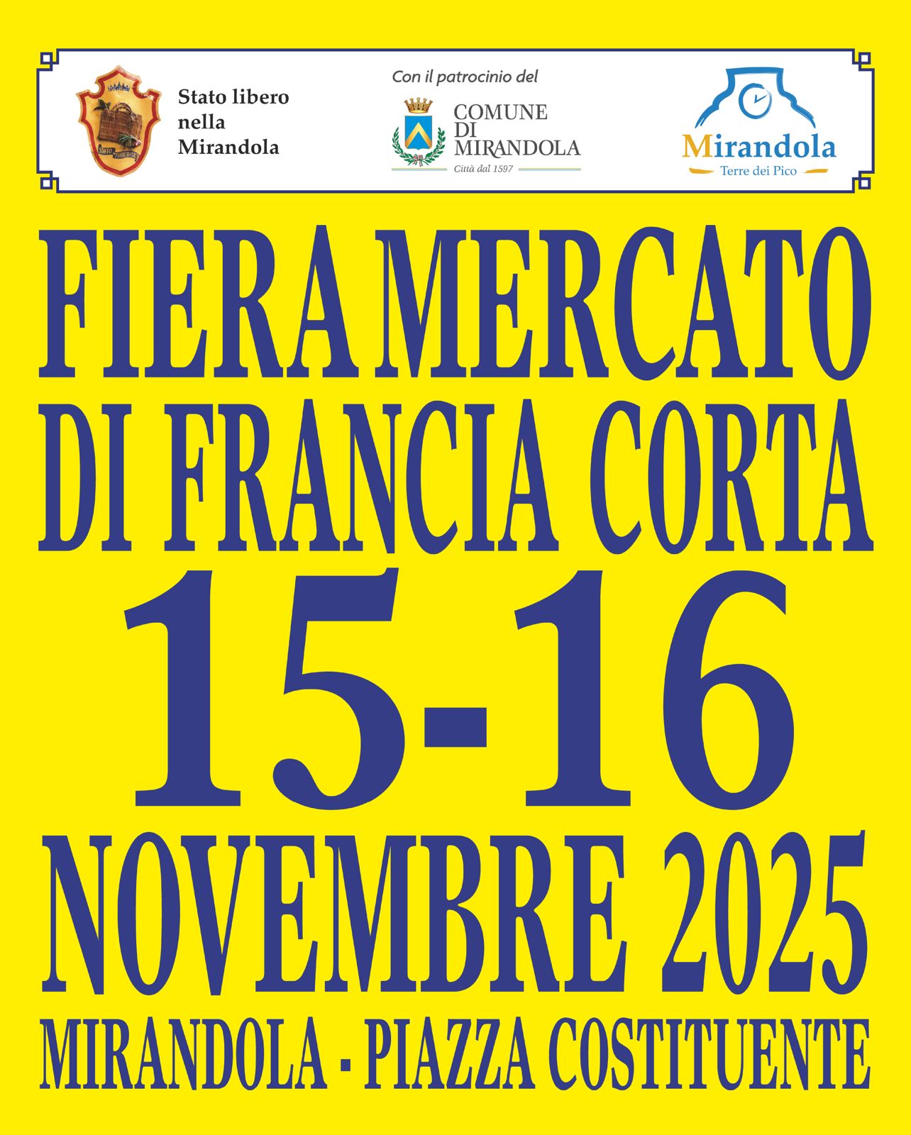 “La Fiera Mercato di Francia Corta rappresenta da sempre un momento speciale per la nostra comunità, capace di rafforzare il legame tra i Mirandolesi e il territorio – dichiara il Sindaco Letizia Budri – La piazza si trasforma in un luogo di condivisione, dove tradizione, cultura e socialità si incontrano, offrendo a tutti l’opportunità di riscoprire le nostre radici e di guardare al futuro con fiducia. È una festa che coinvolge persone di ogni età e provenienza, rendendo ciascuno parte di una comunità viva e coesa. Mi auguro che anche quest’anno la Fiera possa portare gioia, spirito di appartenenza e calore umano, confermandosi un appuntamento unico per chi vive a Mirandola e per chi la visita.”