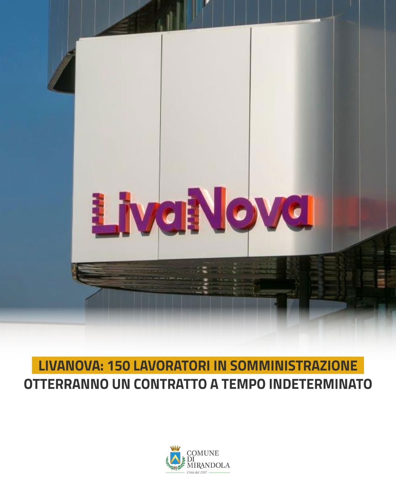 𝗟𝗶𝘃𝗮𝗡𝗼𝘃𝗮, multinazionale specializzata in dispositivi medici per la cardiochirurgia, la neuromodulazione e la gestione del ritmo cardiaco, ha annunciato questa mattina la trasformazione di 𝟭𝟱𝟬 𝗰𝗼𝗻𝘁𝗿𝗮𝘁𝘁𝗶 𝗱𝗮 𝘀𝗼𝗺𝗺𝗶𝗻𝗶𝘀𝘁𝗿𝗮𝘇𝗶𝗼𝗻𝗲 𝗮 𝘁𝗲𝗺𝗽𝗼 𝗶𝗻𝗱𝗲𝘁𝗲𝗿𝗺𝗶𝗻𝗮𝘁𝗼 per il sito di Mirandola nel 2026.