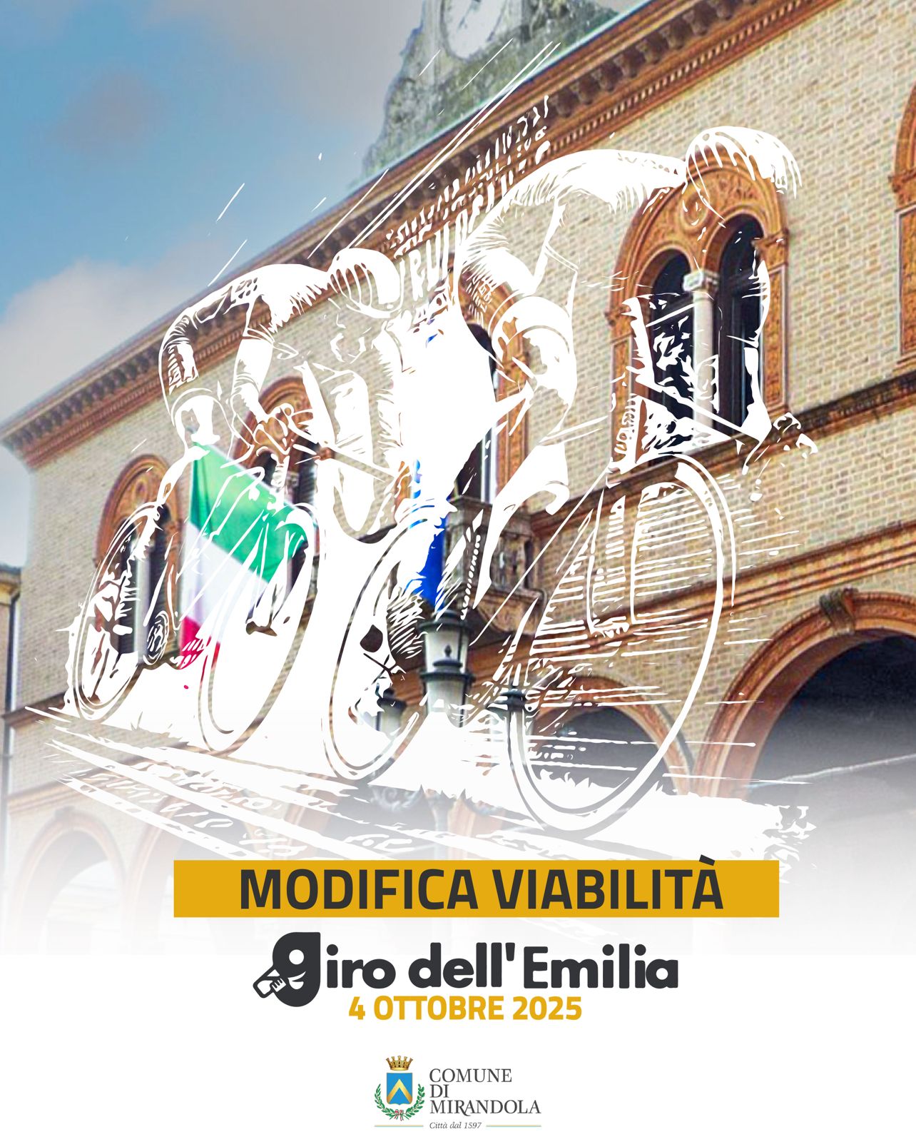 In vista della partenza del Giro dell’Emilia 2025, prevista per sabato 4 ottobre a Mirandola, sono stati disposti importanti provvedimenti temporanei di chiusura strade e modifiche alla circolazione per consentire lo svolgimento in sicurezza della manifestazione ciclistica.
