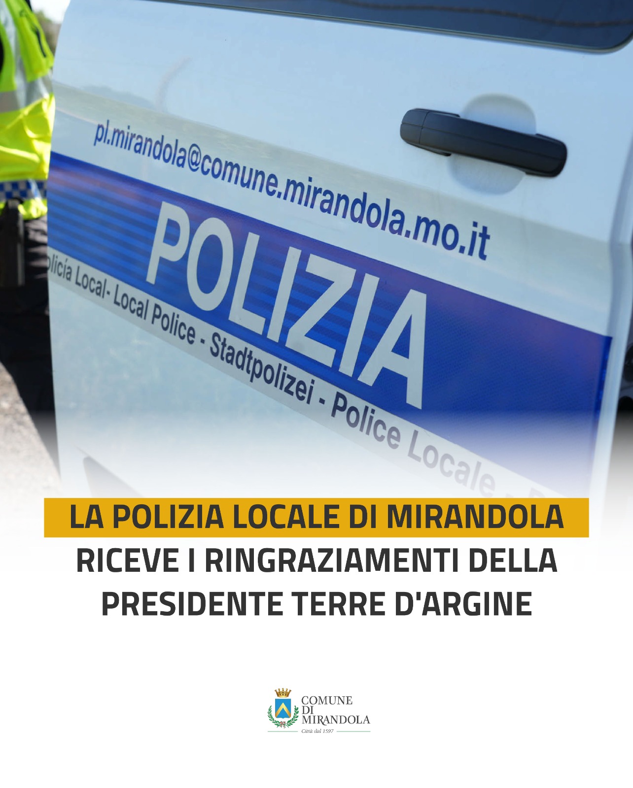 Il Comune di Mirandola accoglie con orgoglio le parole di ringraziamento ufficiale inviate dal Sindaco di Campogalliano e Presidente dell’Unione Terre d’Argine, Dott.ssa Daniela Tebasti, che ha voluto sottolineare la professionalità, il senso del dovere e lo spirito di servizio dimostrati dagli operatori impegnati sul campo.