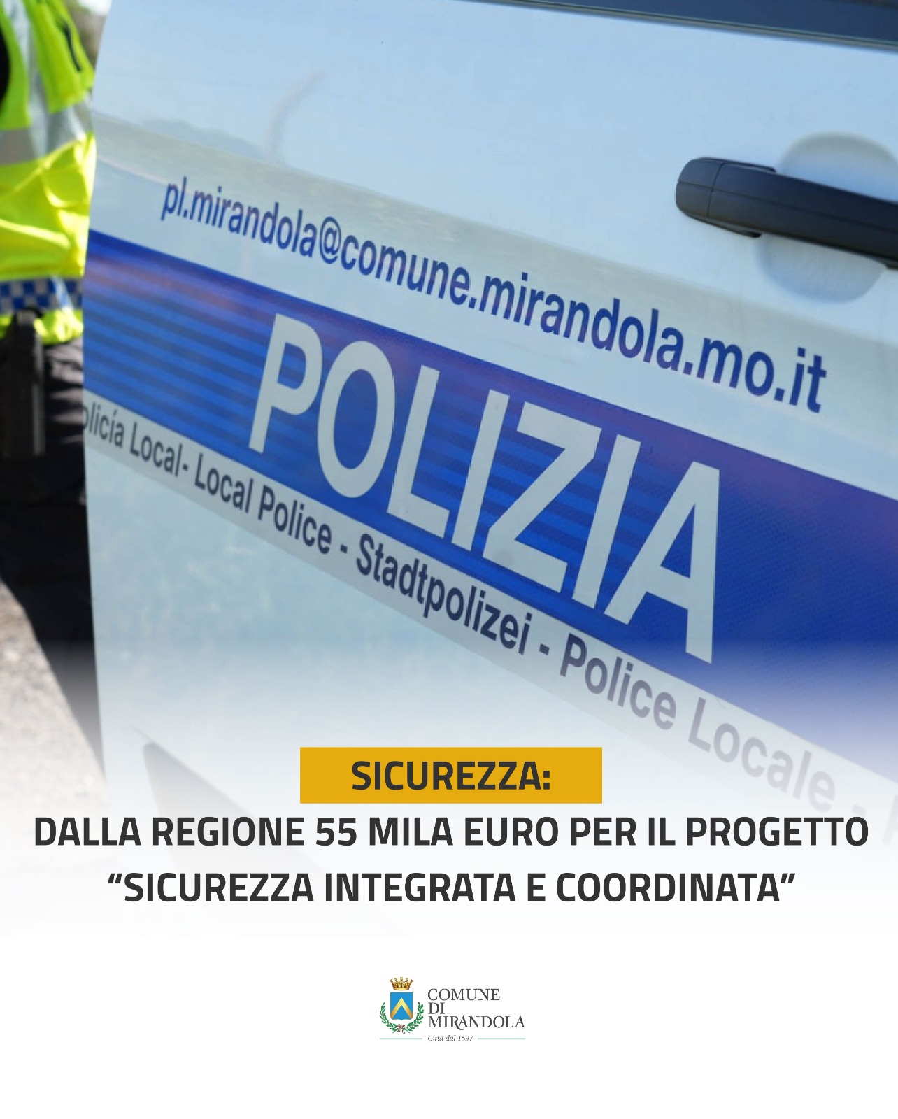 La Regione Emilia-Romagna ha riconosciuto al Comune di Mirandola un contributo di 55.300€ per il finanziamento di un progetto di potenziamento della sicurezza urbana, presentato nell’ambito del bando 2025.