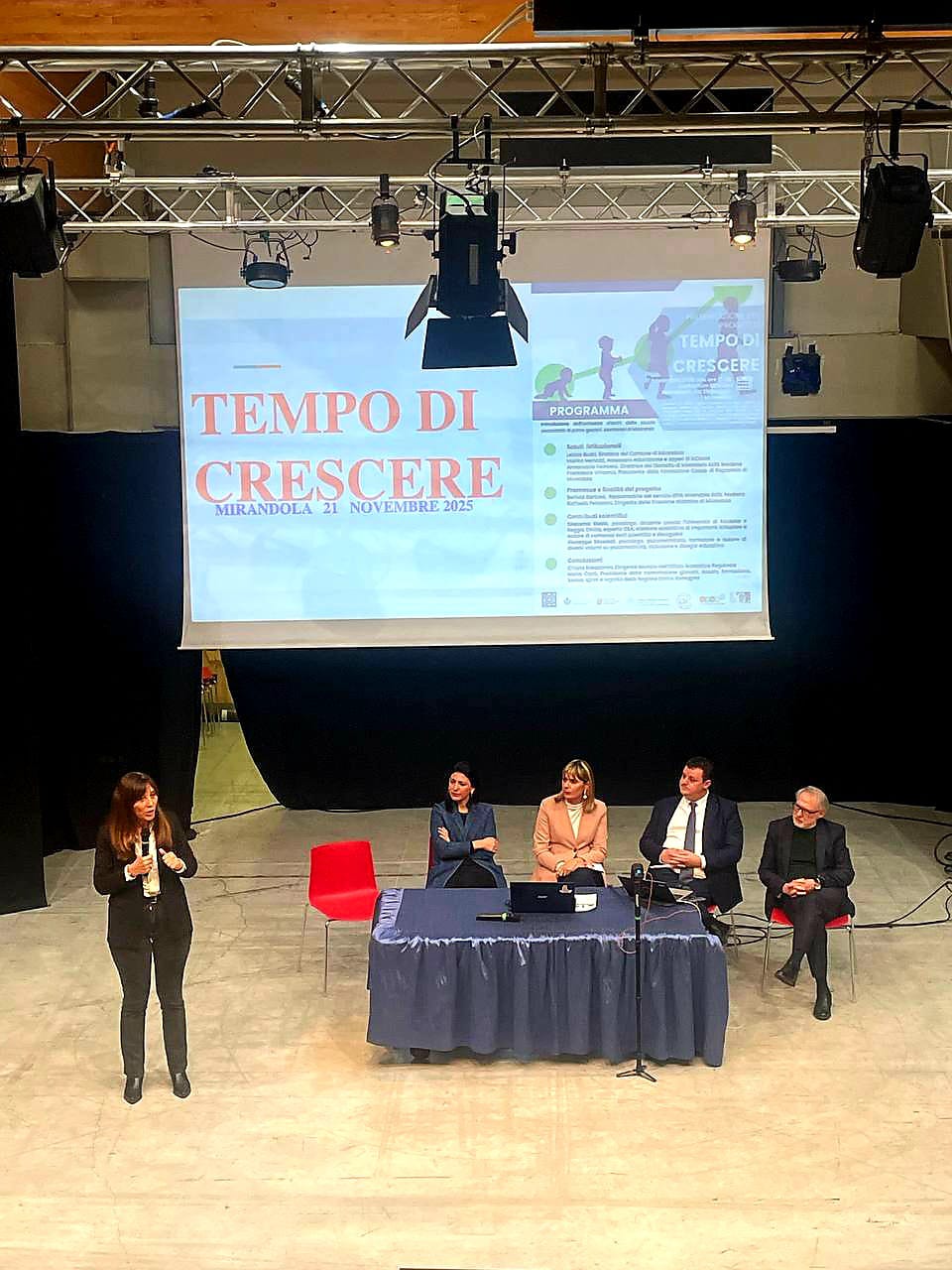 Venerdì 21 Novembre presso l’Aula Magna Rita Levi Montalcini di Mirandola, il Comune di Mirandola e l’Unione Comuni Modenesi Area Nord, in collaborazione con la Scuola di Musica "Andreoli" hanno presentato “Tempo di Crescere”, un progetto dedicato al benessere dei bambini e al contrasto della povertà educativa. L’iniziativa punta a costruire una comunità educante forte e condivisa, grazie alla collaborazione tra scuole, servizi, AUSL e realtà culturali del territorio.