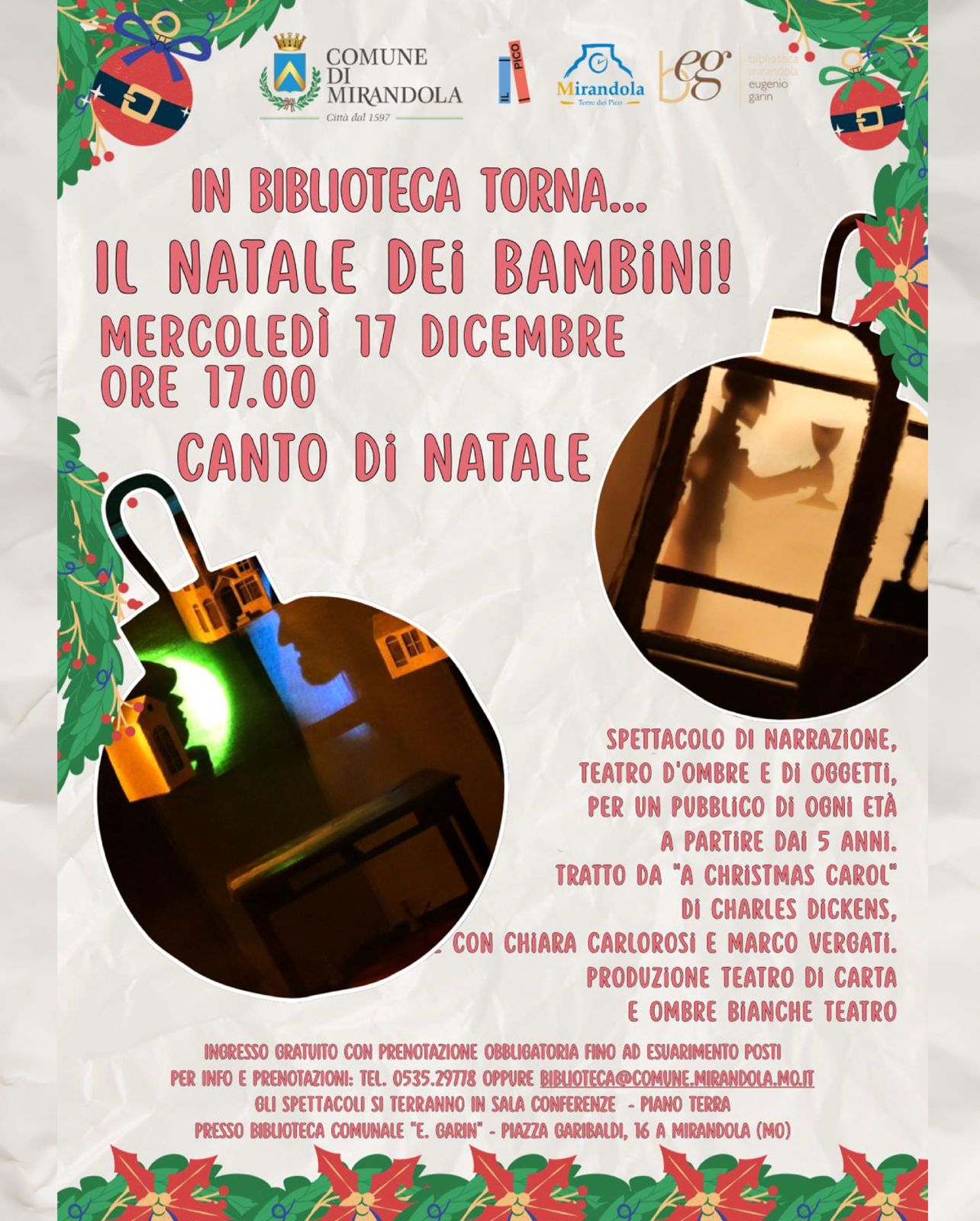 concorsonatalemirandola@comune.mirandola.mo.it entro il 14 dicembre 2025. Nella mail dovranno essere indicati nome, cognome ed età del bambino/a, il titolo del libro scelto, il nome del genitore e un recapito telefonico. La premiazione è in programma sabato 20 Dicembre, dalle ore 17.00 alle 19.00, alla presenza di Babbo Natale, che consegnerà un piccolo omaggio a tutti i partecipanti.